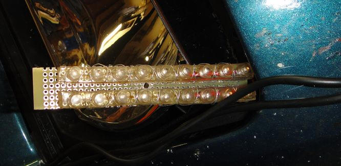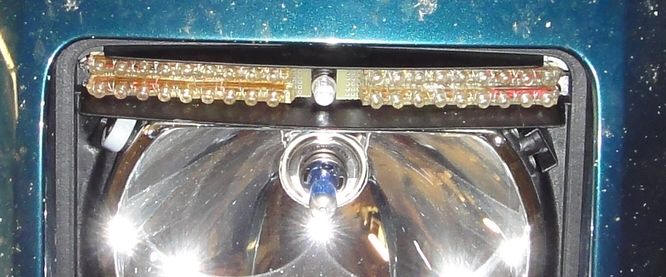 V1.0: Many moons ago I found a 12V 18-LED bar to replace the parking. Old LED technology and not incredibly bright but at least it was LED.