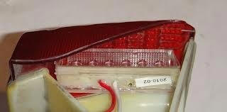 Clean the inside of each side of the tail light lens and then mount a marker light in each side with the double-sided tape.(I used clear plastic red LEDs in this example.)