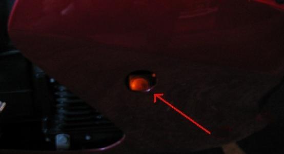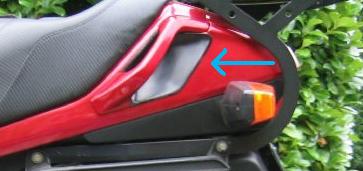 right rear of the gas tank. Typically these are routed by hoses to